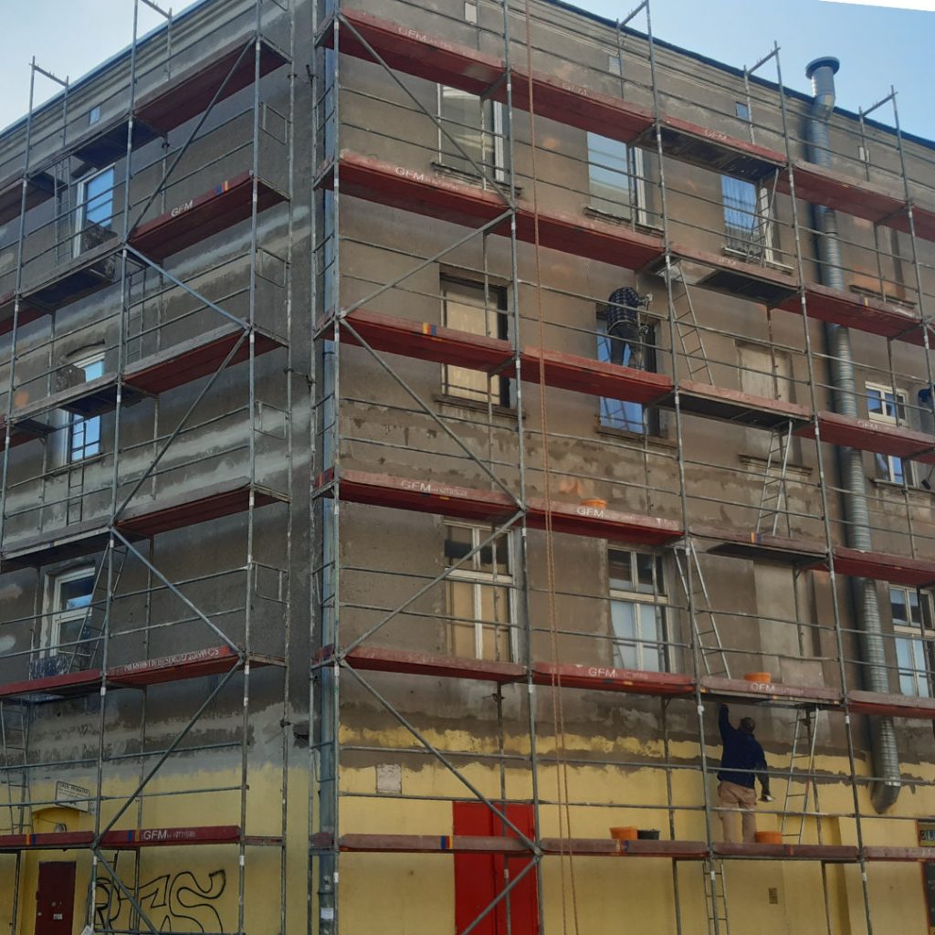 - Lokalne zszycia w systemie StatiCal na elewacji oraz wewnątrz budynku.