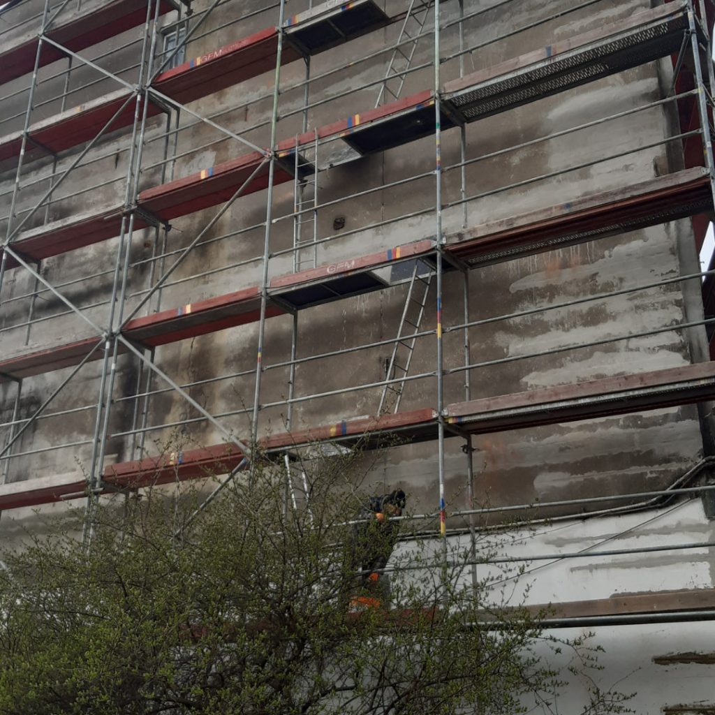 - Obwodowe zszycie wieży Kościoła w systemie StatiCal – wykonane z podestu przejezdnego.